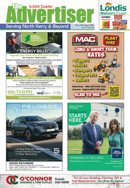 The Advertiser is a free magazine distributed throughout the greater North Kerry area and parts of West Limerick.