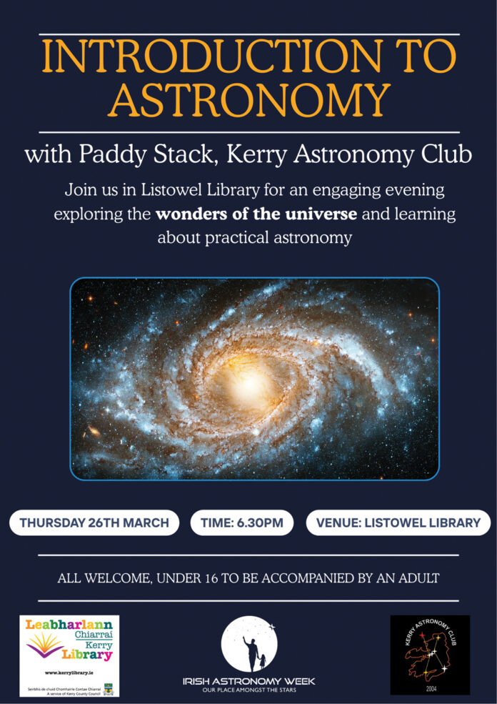 Listowel Library is delighted to host an Introduction to Astronomy event with Paddy Stack from the Kerry Astronomy Club.