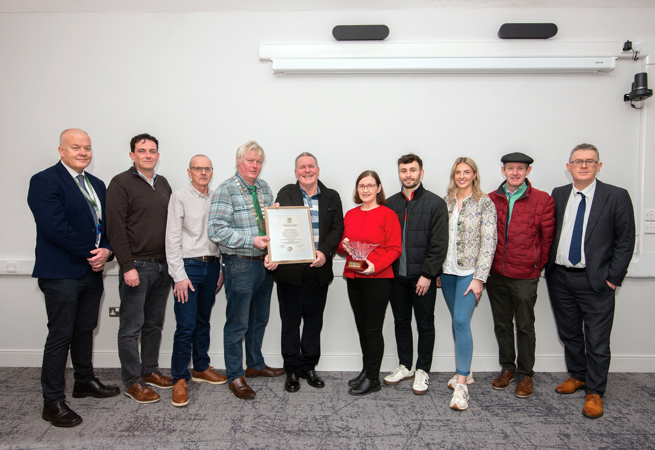 Pictured from left: Paul Neary, Kerry County Council, Cllr. Jimmy Moloney, Cllr. Tom Barry, Cathaoirleach of Listowel MD, Cllr. Michael Leane with Willie Guiney recipient of the Certificate of Recognition in acknowledgement of his running career, his wife Kathleen and son Liam, Cllr. Aoife Kelly, Cllr. Liam ‘Speedy’ Nolan and Sean Scally, Kerry County Council. The presentation was made at the offices of Kerry County Council in Listowel on Wednesday 21st January 2025. Photo: Pauline Dennigan